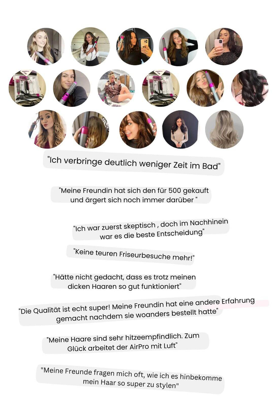 FeelDeluxe steht für echte Ergebnisse, die du sehen und fühlen kannst. Unsere über 56.000+ Kunden lieben die Vielseitigkeit und den Glanz, den unser AirPro in ihr Haar zaubert. Schaue dir ihre Erfahrungen an und endecke, wie der AirPro auch dein Haar verzaubern kann!
